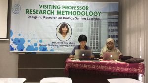 “Menjadi Program Studi Magister Pengembang IPTEKS yang Unggul di Bidang Pendidikan Biologi dan Bereputasi di Tingkat Internasional” adalah visi Prodi S2 Pendidikan Biologi. Guna mencapai visi tersebut, Prodi S2 Pendidikan Biologi telah bekerjasama dengan para institusi dan pakar dari dalam dan luar negeri. Salah satu kegiatan yang dilakukan adalah Inbound Scholar Exchange yang dilaksanakan pada tanggal 7-14 Oktober 2019. Kegiatan ini telah menghadirkan Prof. Meng Tzu Cheng dari National Chang Hua University of Education, Taiwan. Kuliah yang diikuti oleh seluruh mahasiswa S2 Pendidikan Biologi ini merupakan bagian dari matakuliah Metodologi Penelitian yang wajib ditempuh oleh seluruh mahasiswa S2 Pendidikan Biologi. Kuliah yang berjalan dinamis dan interaktif ini telah memberikan wawasan yang luas dalam melakukan desain penelitian di bidang pendidikan biologi khususnya tentang gaming learning.