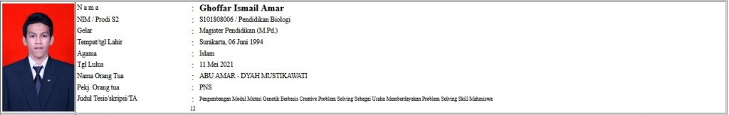 Adapun Wisudawan S2 Pendidikan Biologi untuk periode Juni 2021 adalah sebagai berikut:
