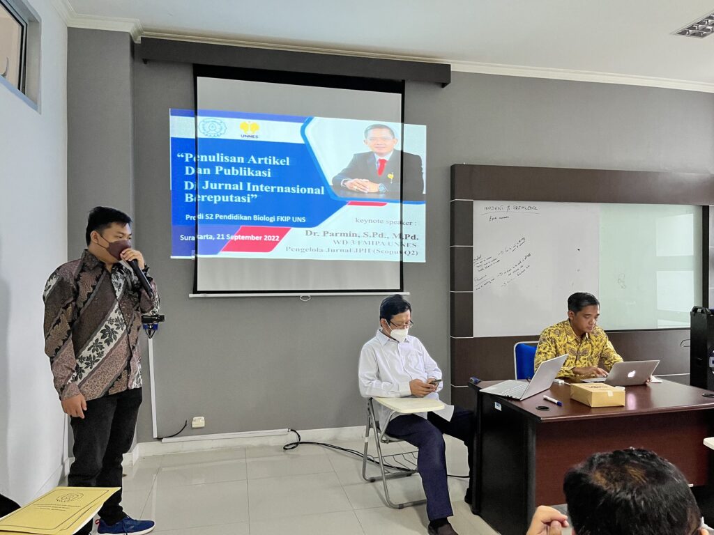 Pada tanggal 21 September 2022, Prodi Magister Pendidikan Biologi FKIP UNS melaksanakan Workshop Pelatihan Penulisan Jurnal Ilmiah. Kegiatan ini dilatar-belakangi oleh kewajiban publikasi bagi dosen dan mahasiswa. Mahasiswa dan dosen dituntut untuk dapat menulis dan menerbitkan hasil penelitian mereka ke jurnal ilmiah bereputasi. Namun seringkali mahasiswa dan dosen mengalami kesulitan untuk menulis artikel ilmiah yang baik serta memilih penerbit jurnal target untuk penerbitan.