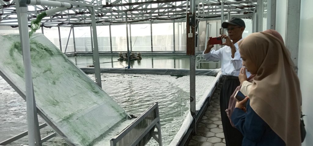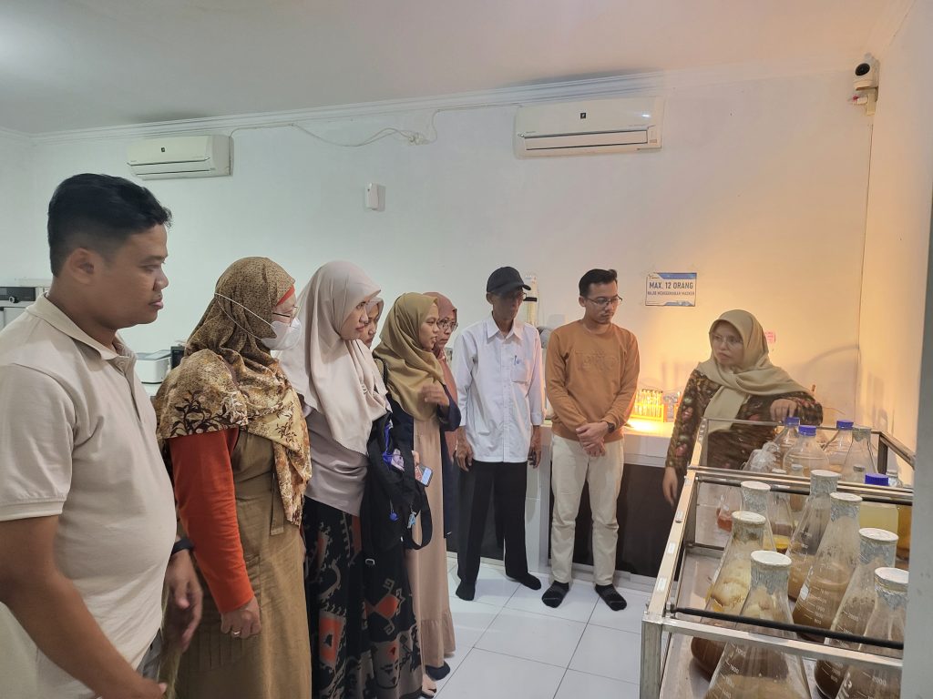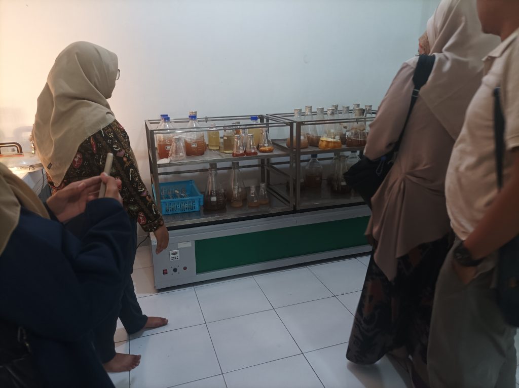 Kegiatan dilanjutkan dengan kunjungan ke PT. Algaepark Indonesia Mandiri, pionir perusahaan bioteknologi mikroalgae di Indonesia. Di sini, mahasiswa memperoleh wawasan mengenai budidaya dan pengolahan mikroalgae air tawar yang digunakan untuk berbagai keperluan, termasuk superfood dan nutrisi hewan. Diskusi yang berlangsung antara mahasiswa dan pihak perusahaan memberikan pengetahuan yang sangat berharga tentang aplikasi mikrobiologi dalam industri serta potensi karir di bidang tersebut.