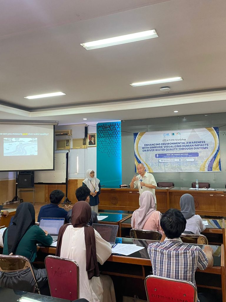 Surakarta, 17 September 2025 — Mahasiswa Program Studi Magister Pendidikan Biologi Fakultas Keguruan dan Ilmu Pendidikan Universitas Sebelas Maret (FKIP UNS) menggelar workshop berjudul “Enhancing Environmental Awareness with SimRiver: Visualizing Human Impacts on River Water Quality through Diatoms”. Acara berlangsung di Aula Gedung A Lt. 2, dengan mendatangkan narasumber internasional, Prof. Dr. Shigeki Mayama dari Tokyo Gakugei University, Jepang — penemu dan pengembang utama perangkat lunak SimRiver.